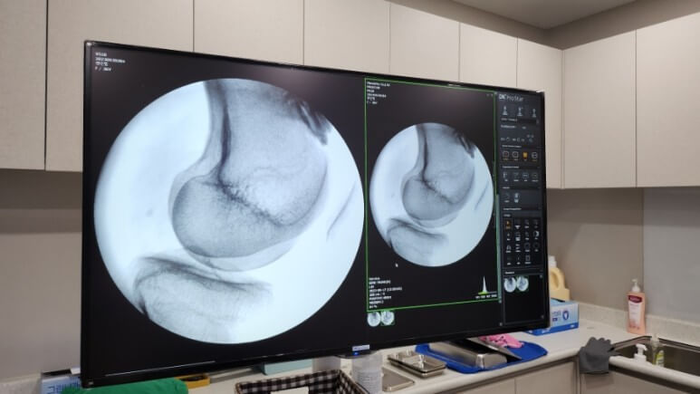 엑스레이 상에 오른쪽 무릎에 석회가 있다고 설명들었는데