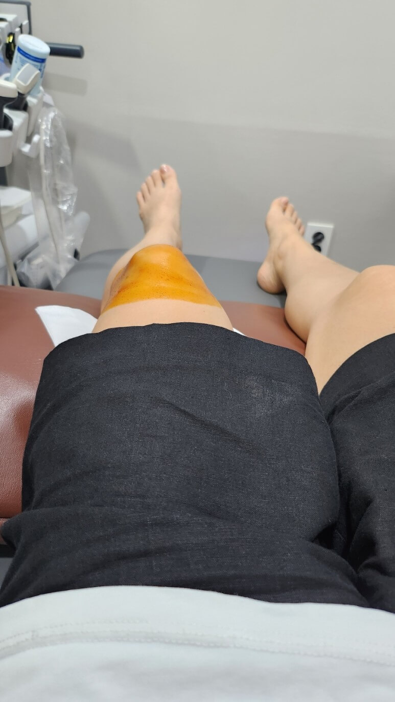 초음파 보면서 통증있던 왼무릎의 염증소견받음