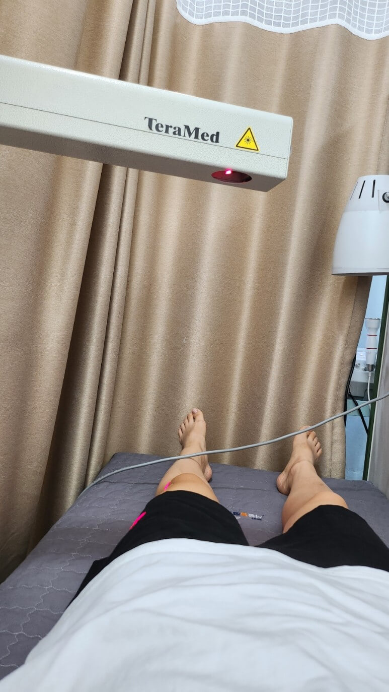 4층에 위치한 물리치료실에서 또 치료 번쩍이는 레이저와 함께함.